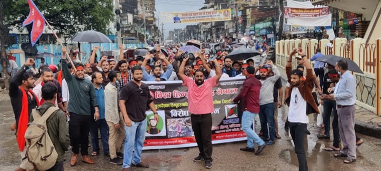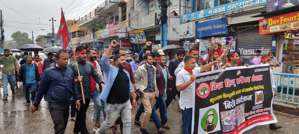 हिन्दुमाथि भएको घटना प्रति आक्रोशित परिषद तथा हिन्दु समाजका युवाहरुले हसिना विरुद्ध प्रर्दशन गर्दै बंगलादेशी हिन्दुलाई न्याय तथा दोषी मुस्लिमलाई कडा कारवाही गर्नुपर्ने माँग गर्दै निकालेका विरोध जुलुस नगर परिक्रममा गरेको थियो । माईस्थानबाट निस्केकाे विरोध जुलुस आर्दशनगर, अलखियामठ, अडिअर्वा हुँदै घण्टाघर चोकमा विरोध जुलुस पुगेर बंगलादेशी प्रधानमन्त्री हसिनाको पुत्ला दहन गरेका गरिएकाे थियाे ।