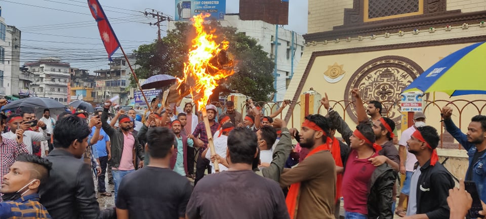 बंगलादेश विरुद्ध वीरगंजमा प्रर्दशन, शेख हसिनाको पुत्ला जलाइयाे