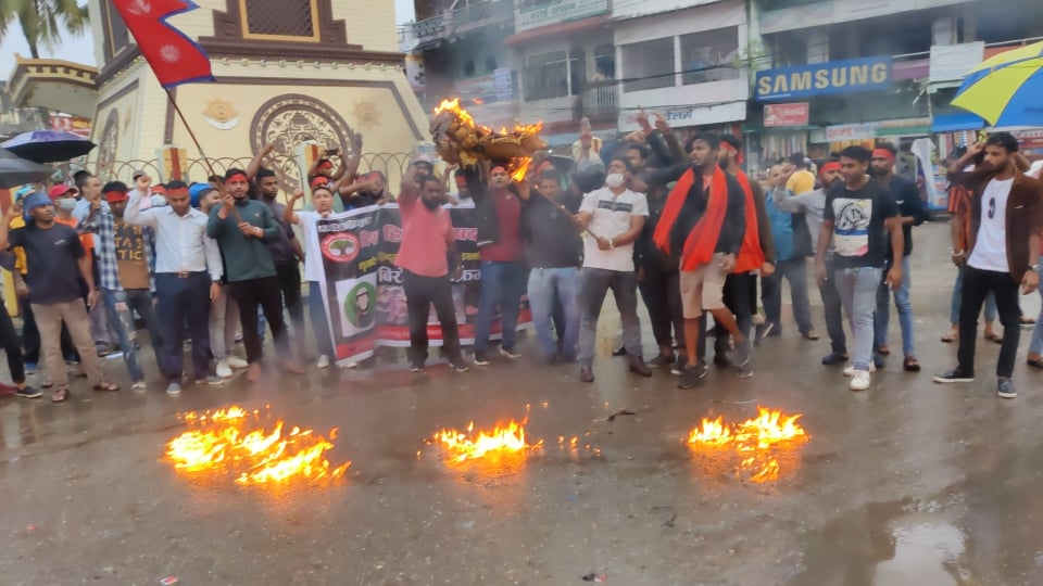 बंगलादेशमा निरन्तर हिन्दु माथि आक्रमण तथा हिन्दुहरुको आस्थाको केन्द्रको रुपमा रहेको मठ मन्दिरमा तोडफोड तथा आगजानी गरेपनि आरोपित मुस्लिमलाई कारवाही नगरेको भन्दै उनको विरोध गर्दै प्रदर्शनकारीहरुले वीरगंजकाे घण्टाघर चोकमा पुत्ला दहन गरेका हुन ।